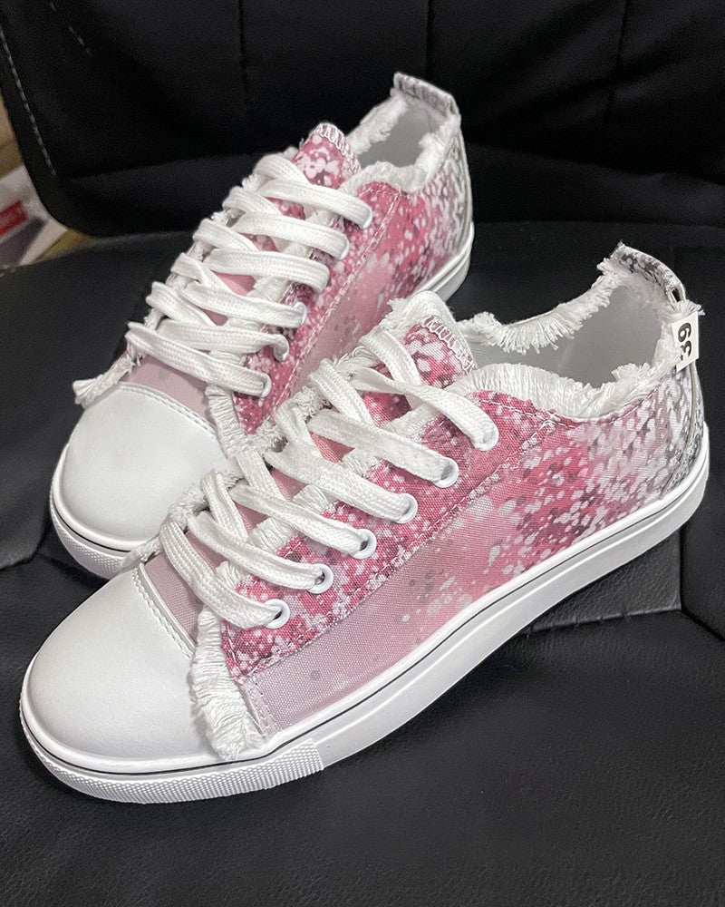 Valentine's Day Ombre Lace up Fringe Hem Canvas Sneakers