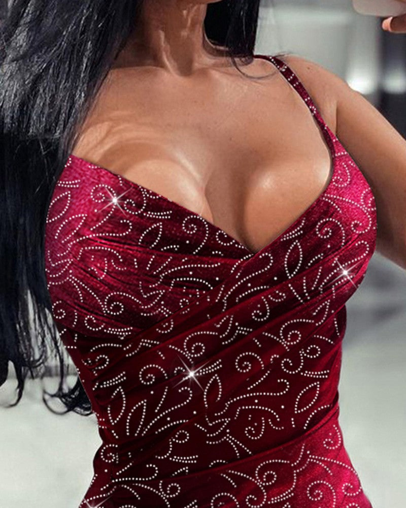 Velvet Rhinestone Ruched Party Dress