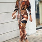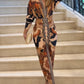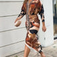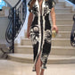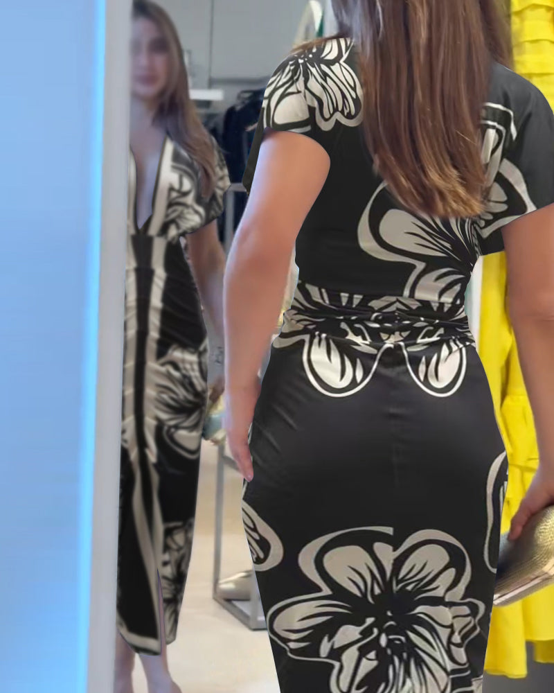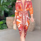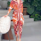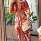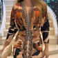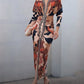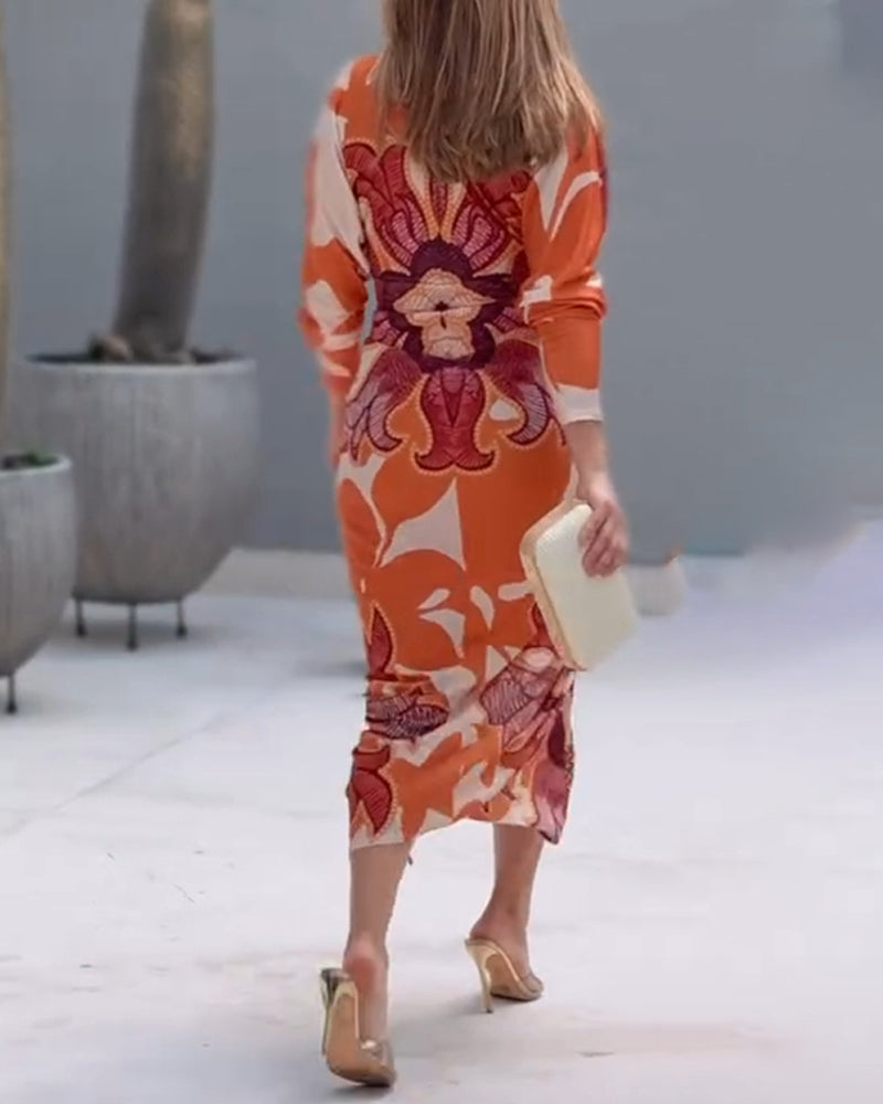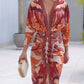 Vintage Baroque Long Sleeve Plunge V Neck Bodycon Dress Sexy Slim Fit Midi Dress