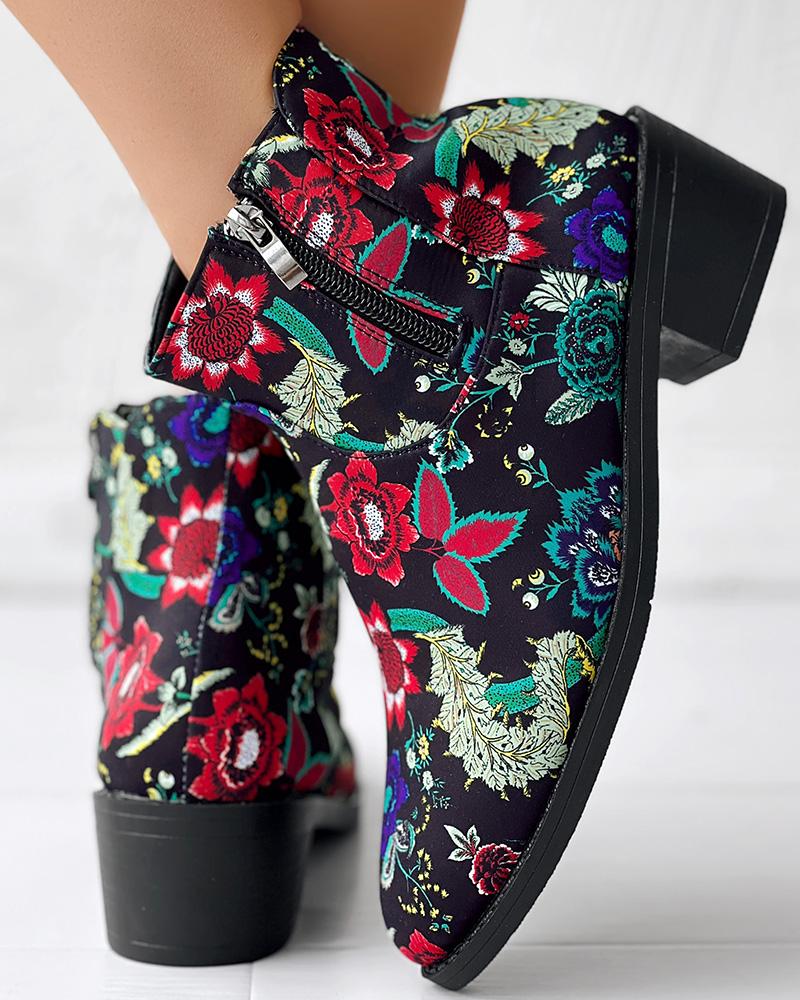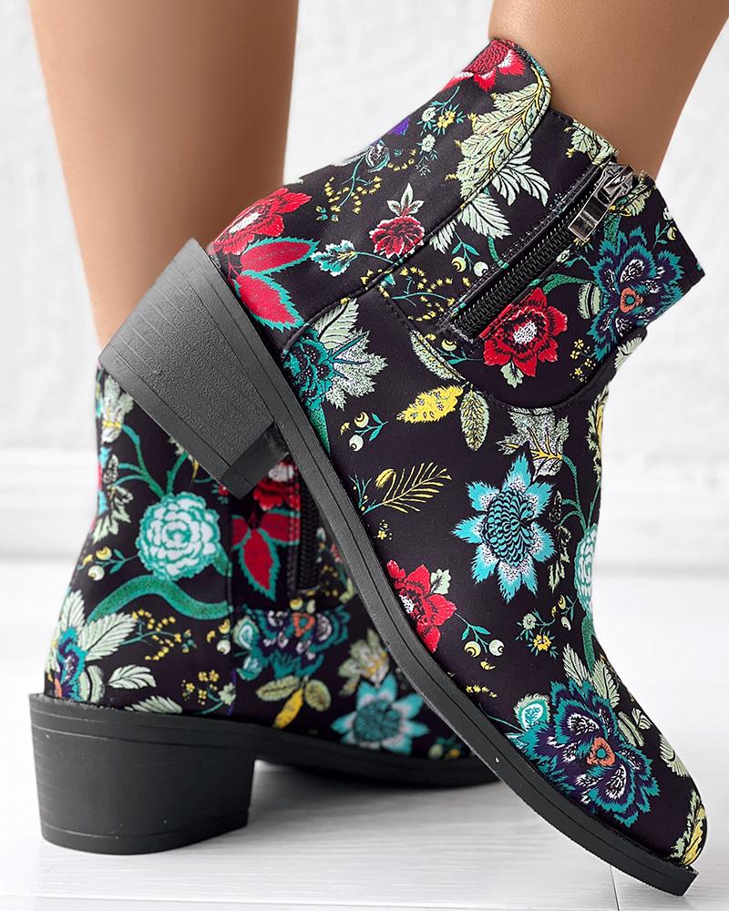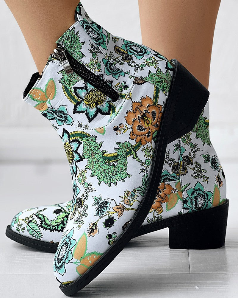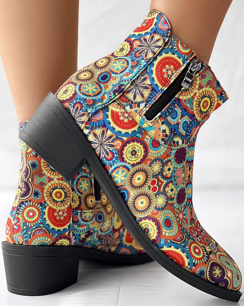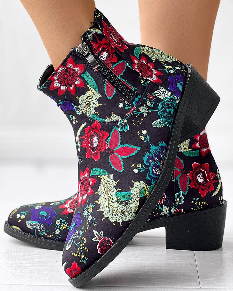 Vintage Floral Tribal Pattern Zipper Back Ankle Boots