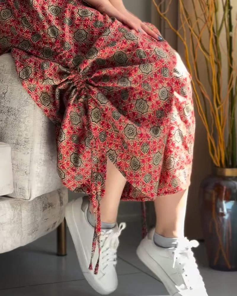 Vintage Tribal Print Halter Tied Detail Jumpsuit Casual Drawstring Loose Romper
