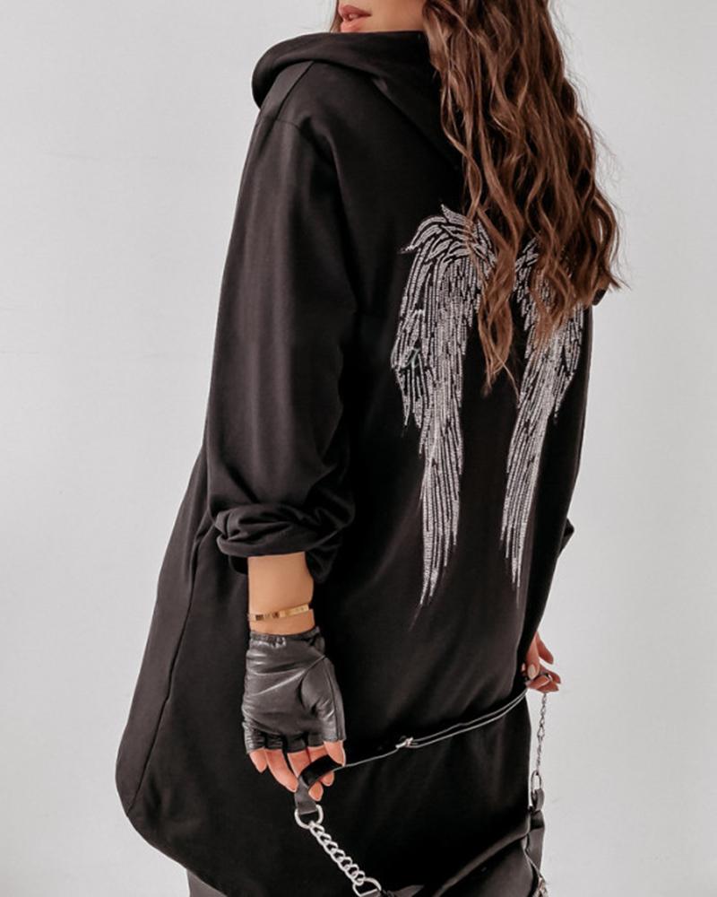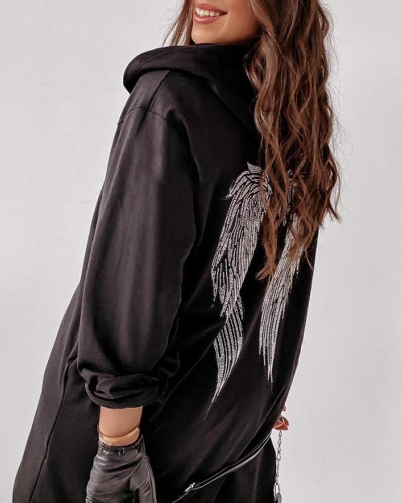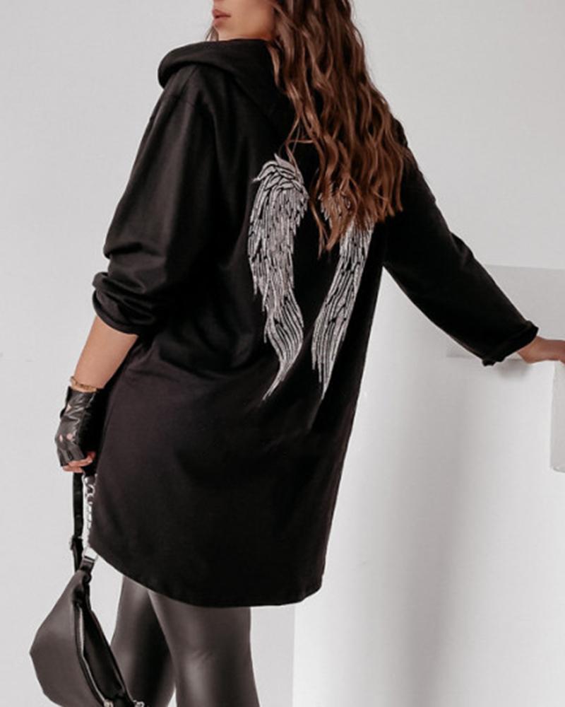 Wings Embroidery Zipper Design Hooded Coat