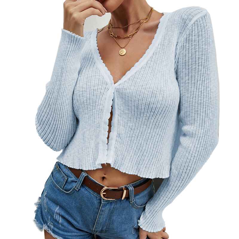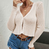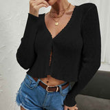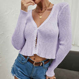 Women's Long Sleeve Cropped Cardigan V Neck Solid Button Down Knit Bolero Shrugs K290
