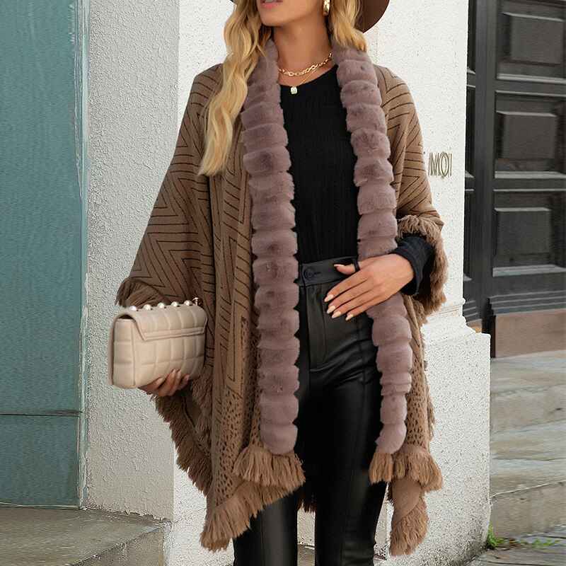 Women's Zig-Zag Knit Tassel Fringed Pullover Poncho Sweater Cape Shawl Wrap K293