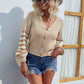 Women's Button Down Knitwear Casual Long Sleeve V-Neck Open Front Striped Cardigan Sweater K230