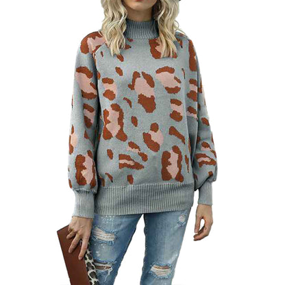 Women's Mock Turtleneck Lantern Sleeve Cable Knit Pullover Sweater Tops K283