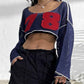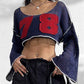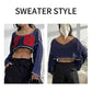 Women's bell-sleeved navel-baring short top with personalized round neck hollow knitted sweater k639