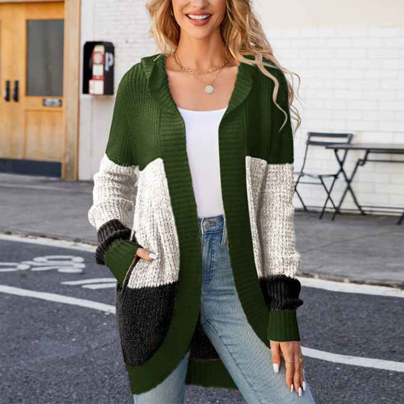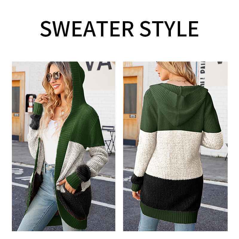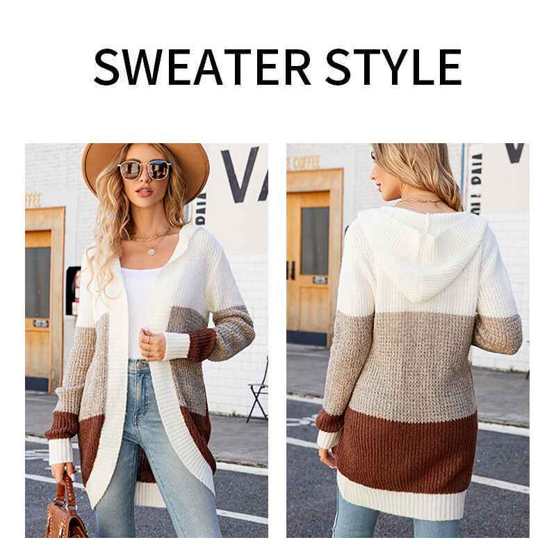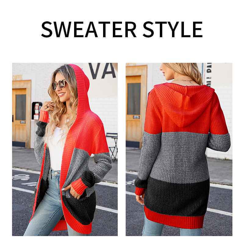 Women's Cardigan Sweater Contrast Color Knitted Sweater Hooded Jacket k628