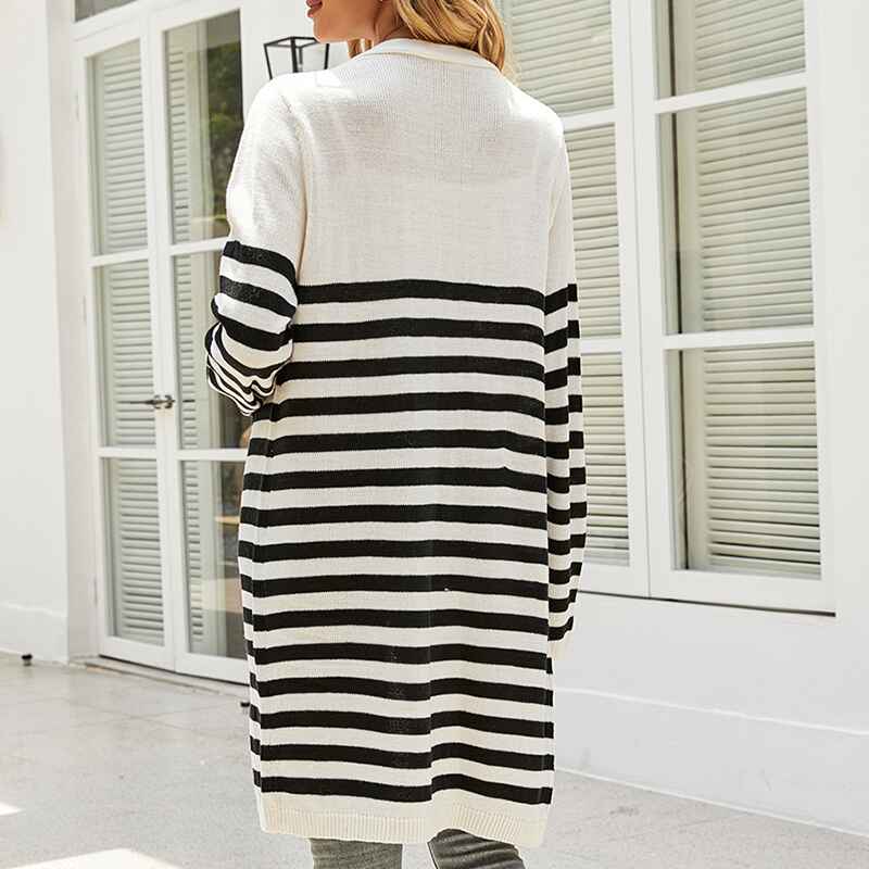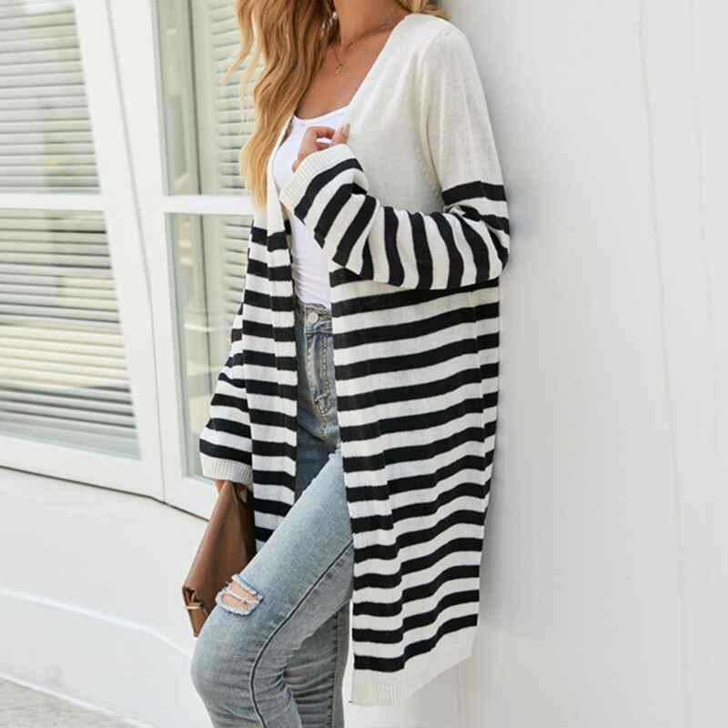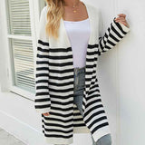 Women's Color Block Striped Draped Cardigan Long Sleeve Casual Knit Sweaters Coat Soft Outwear K597
