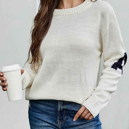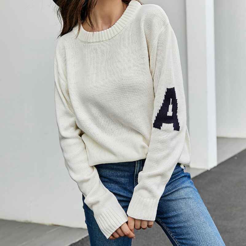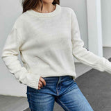 Womens Crew Neck Sweaters Long Sleeve Pullover Knitted Casual Comfy Jumper Tops K581