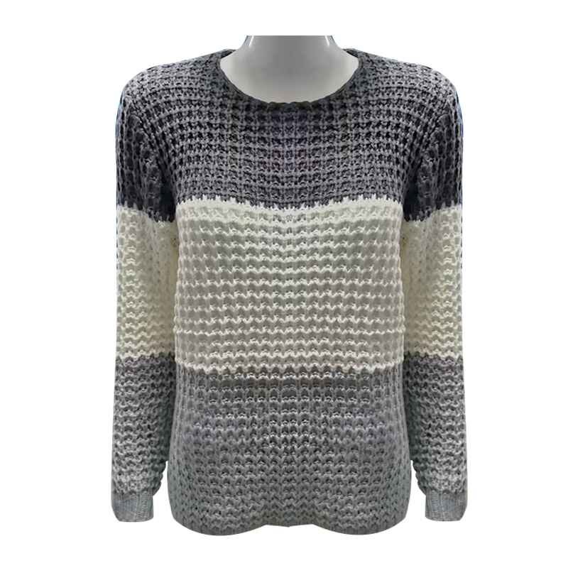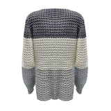 - Triple color block patchwork, casual pull-on closure, loose fit, chunky crochet knitted, ribbed cuffs, and hem.