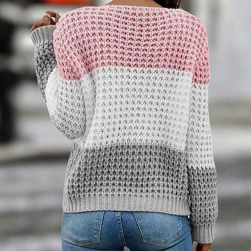 Feel the warmth of your favorite sweater this season with this beautiful Women's Crewneck Color Block Sweater. Featuring a casual knit pullover design with long sleeves, this stylish sweater jumper is perfect for any casual occasion. Get ready to feel cozy and fashionable!