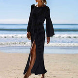 Women's Crochet Swimsuits Cover Up See Through Bikini Sleeveless Split Side Long Maxi Beach Dress K534