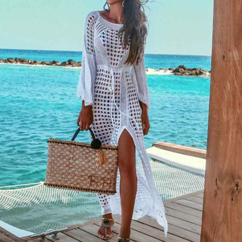 - Feature: long sleeve, hollow out, crochet cover up, cover ups for swimwear women