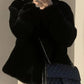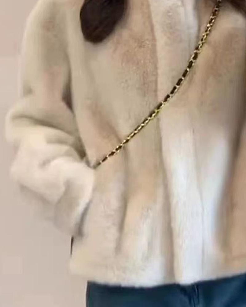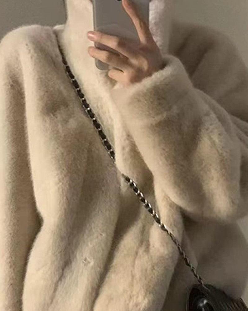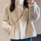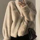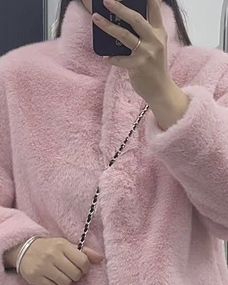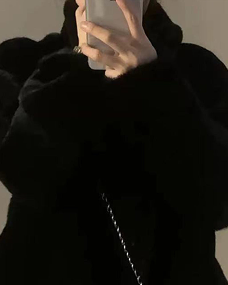 Womens High Neck Open Front Long Sleeve Faux Fur Crop Coat Soft Winter Warm Jacket Outerwear