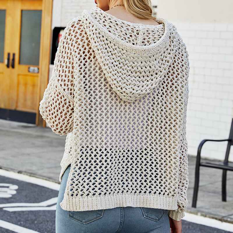 Stay cozy and stylish with the Women's Hollow Out Long Sleeve Crochet Cover-Up Sweater Top! This hoodie cutout knit pullover top features subtle crochet detailing for a unique finish, perfect for making a fashion statement. Ready to turn heads?