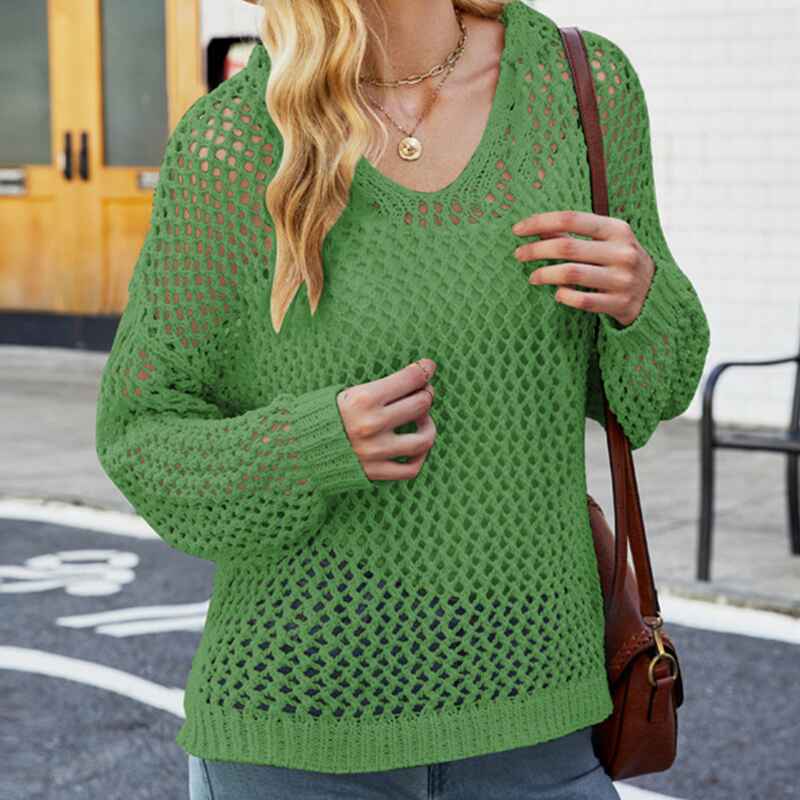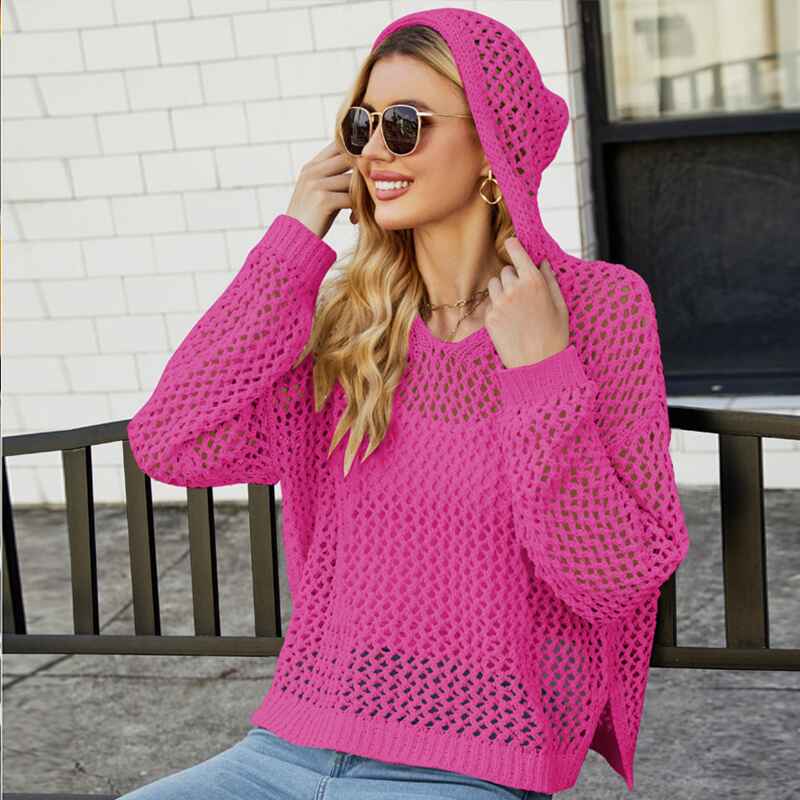 - Design: Solid fall tops will lead the trend and make you different from the crowd. Cutout long-sleeved beach sweater gives you a trendy look. The mesh see-through pattern is very cute and sexy