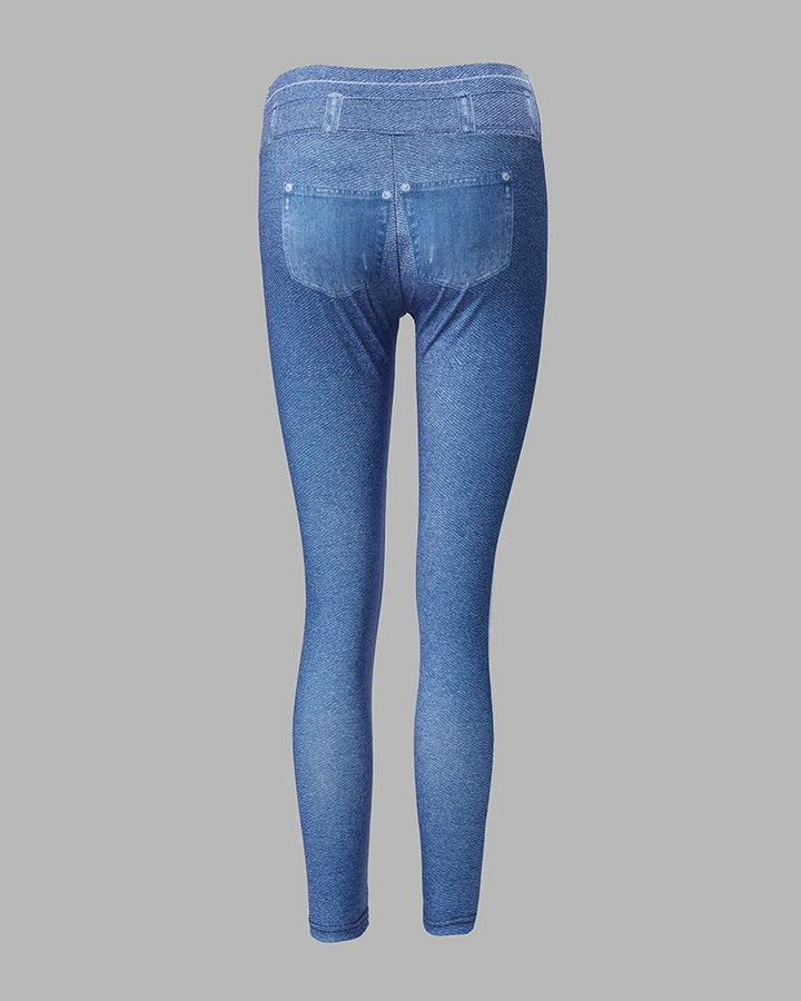 Women's Leggings Faux Denim Printed High Waist Tummy Control Butt Lift Active Pants