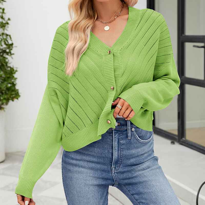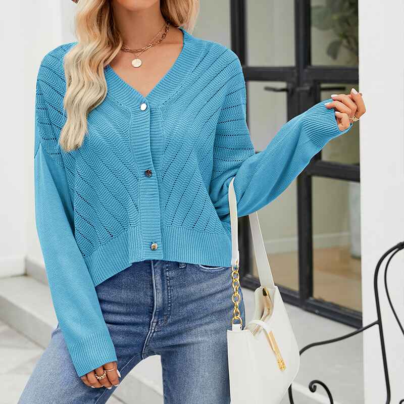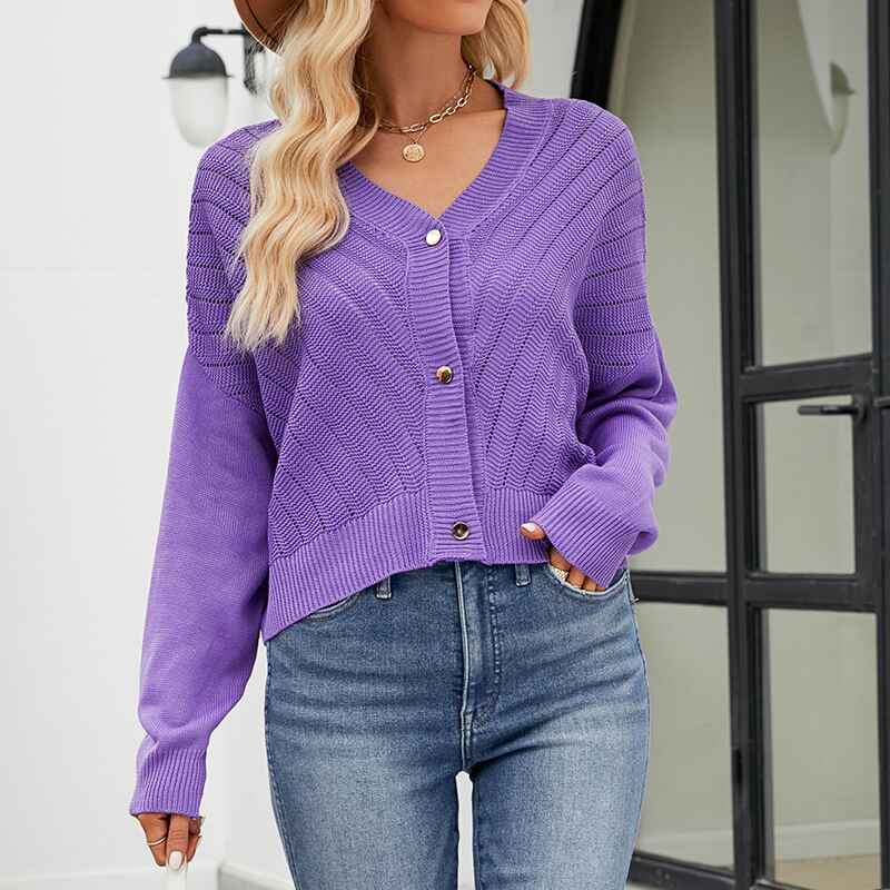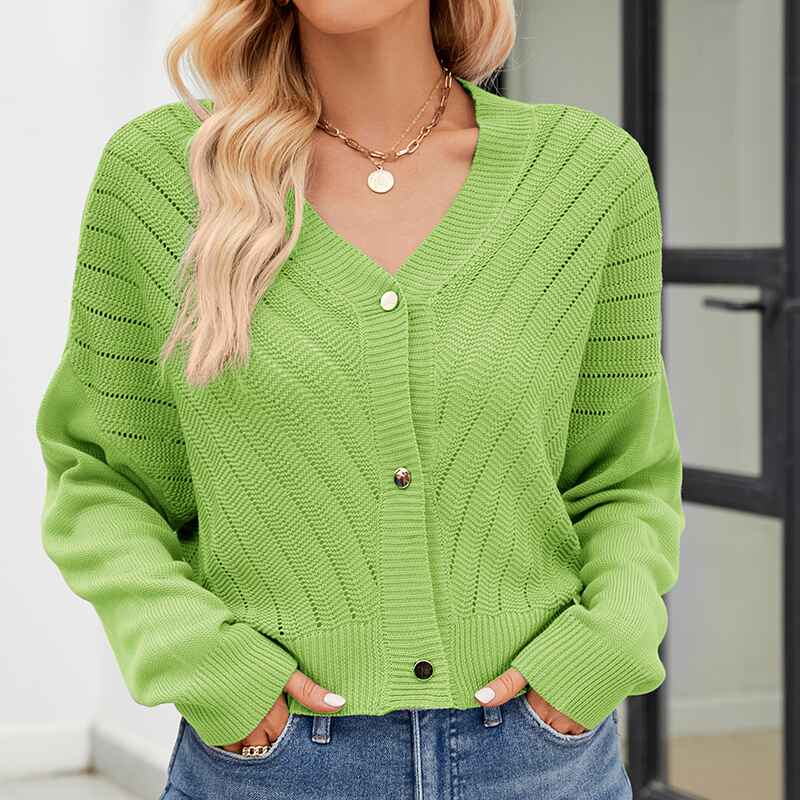 • Cut in classic long sleeves with a button front, it comes in a basic solid color and a short cardigan length. The perfect outfit for Spring, Summer, Autumn, and Winter
