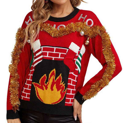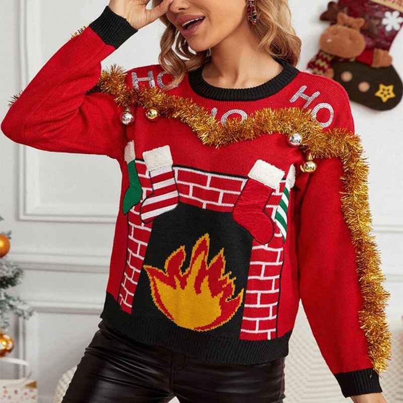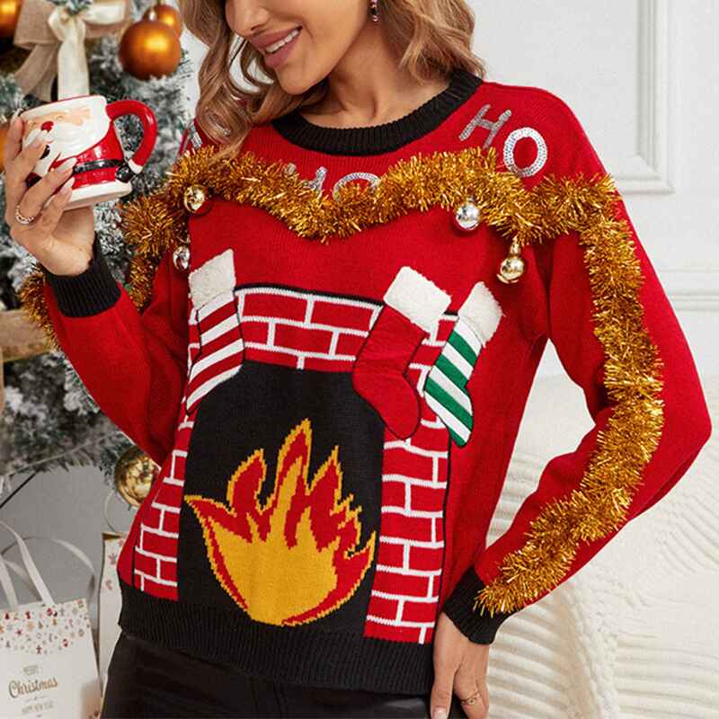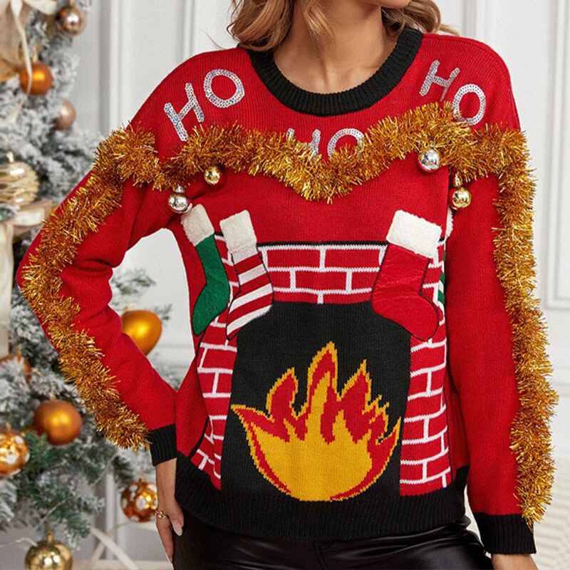 Women's Christmas sweaters, bright colors, and bonfire patterns instantly fill the festive atmosphere, made of soft fabrics