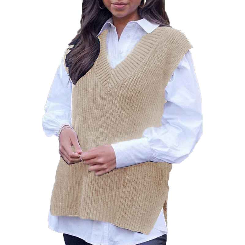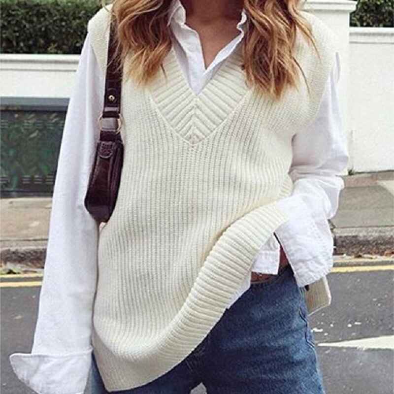 Sweater Vest Women Knitted V Neck Oversized Sweaters Sleeveless Knitwear Tank Tops K40