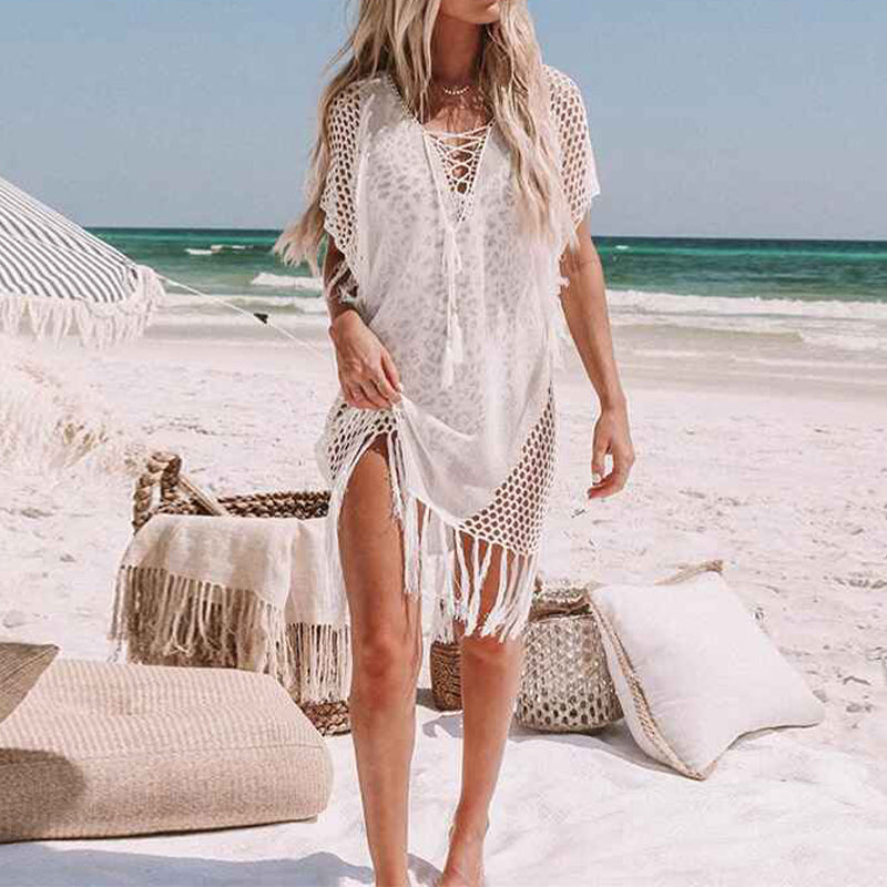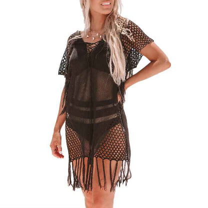Women's Tassel Crochet Bikini Cover-Up Swimsuit Bathing Suit Beach Dress K540
