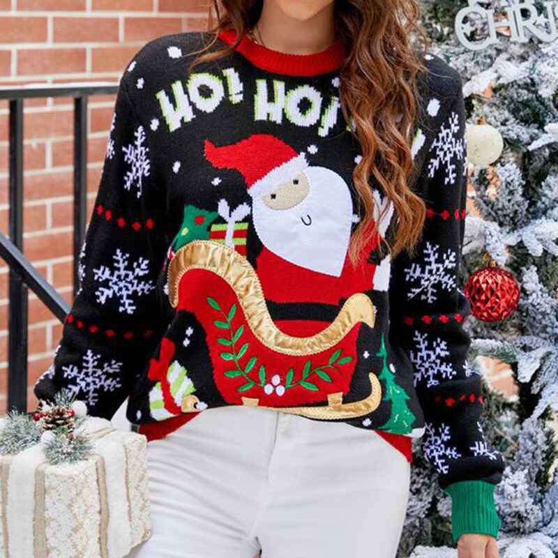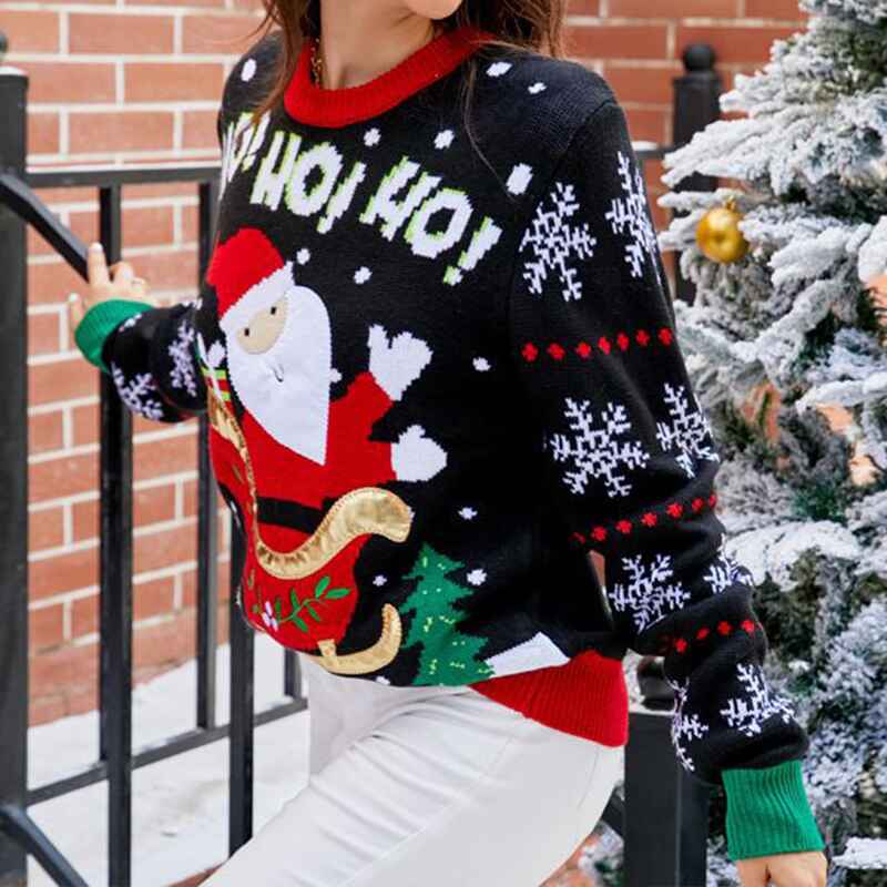 Women's Ugly Christmas Sweater Funny Cute Christmas Tree Snowflake Santa Xmas Knitted Pullover Jumper Tops K615