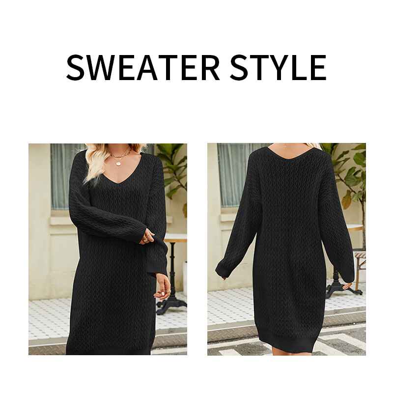 - Feature: sexy v-neck, long sleeve, twist cable chunky knit sweater jumpers, slim fitted mini dress, solid bodycon sweaters dress pullover
