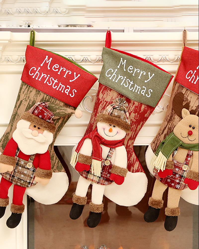 Xmas Big Stockings Santa Snowman Elk Hanging Candy Bag Christmas Tree Ornament