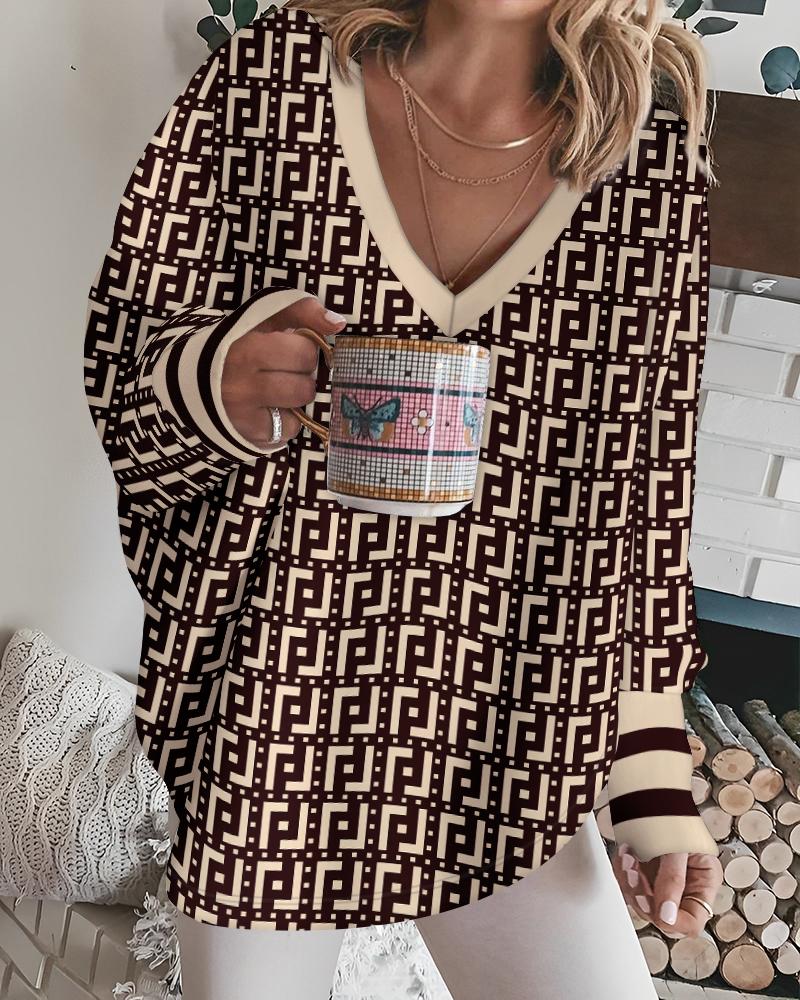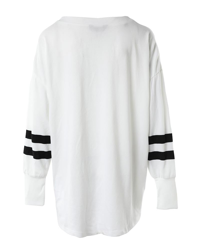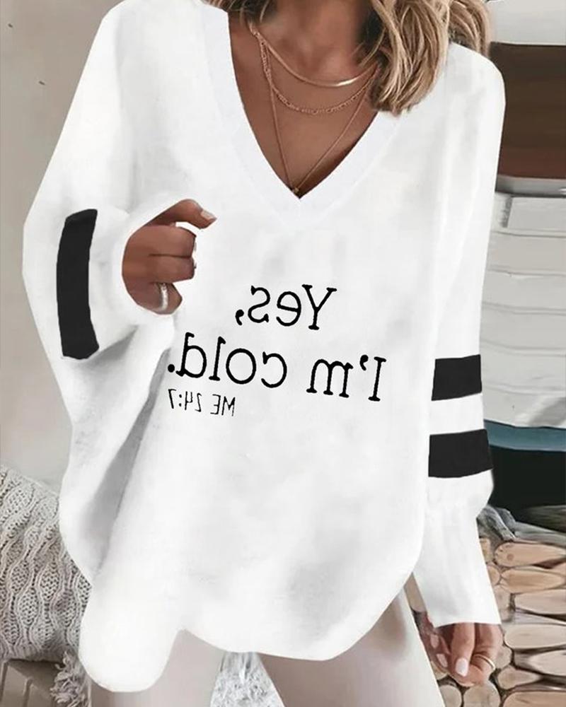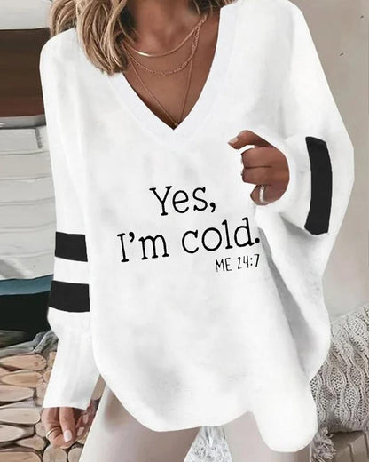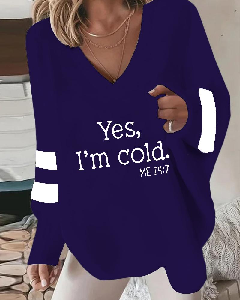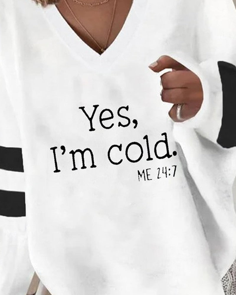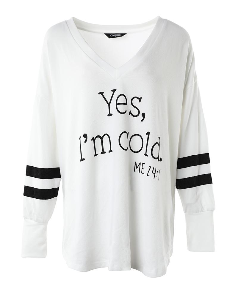 Yes I'm Cold Slogan Print Striped V Neck Top