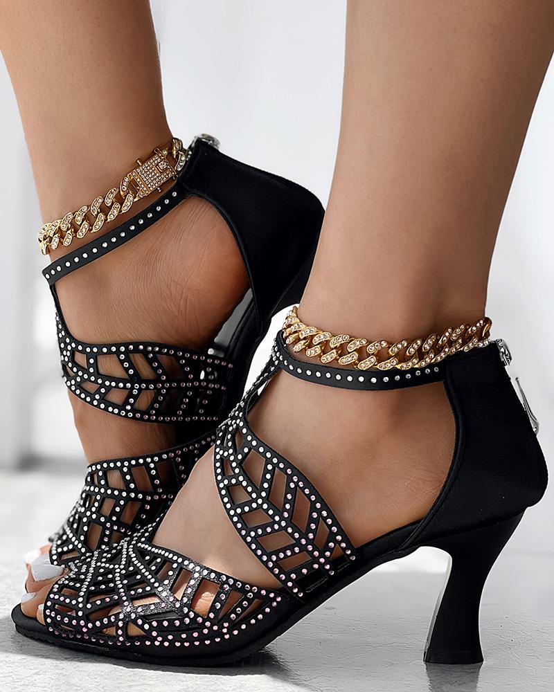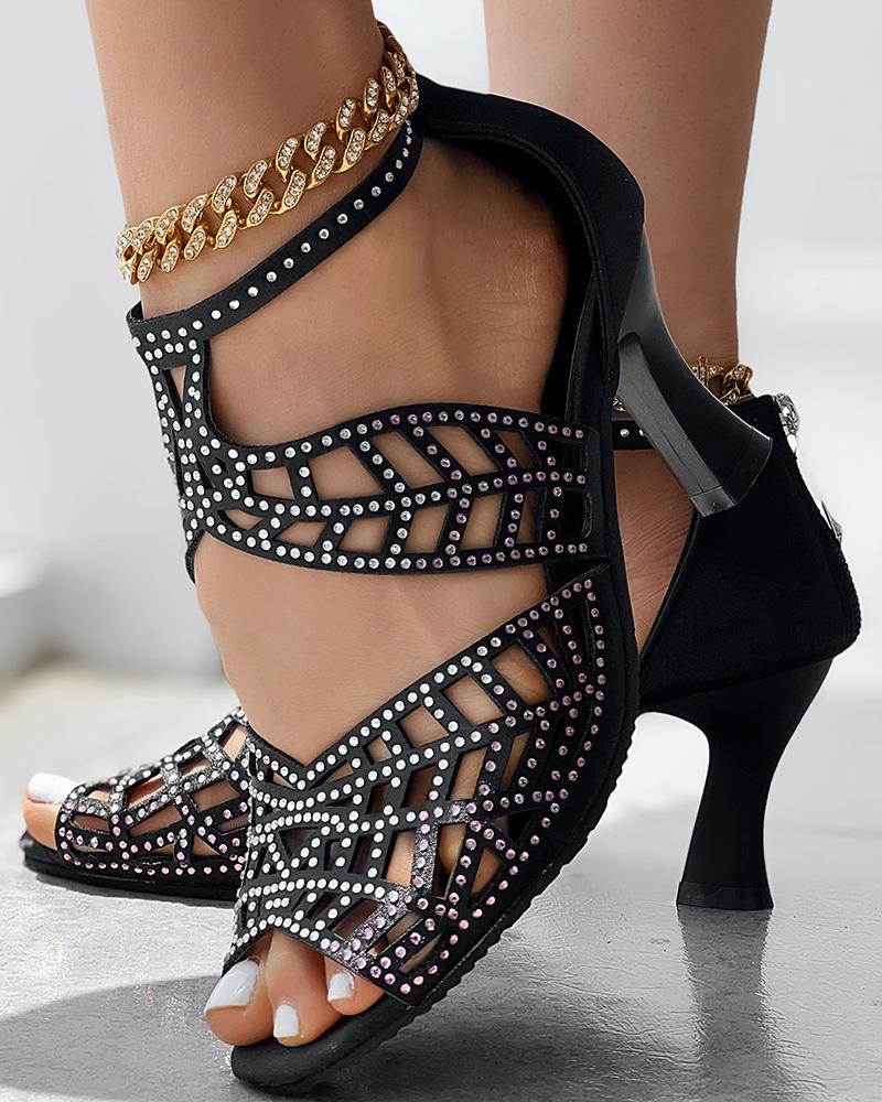 Zip Back Rhinestone Cutout Peep Toe Dance Heels