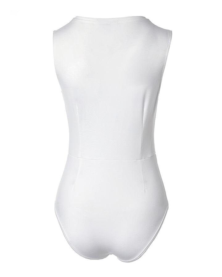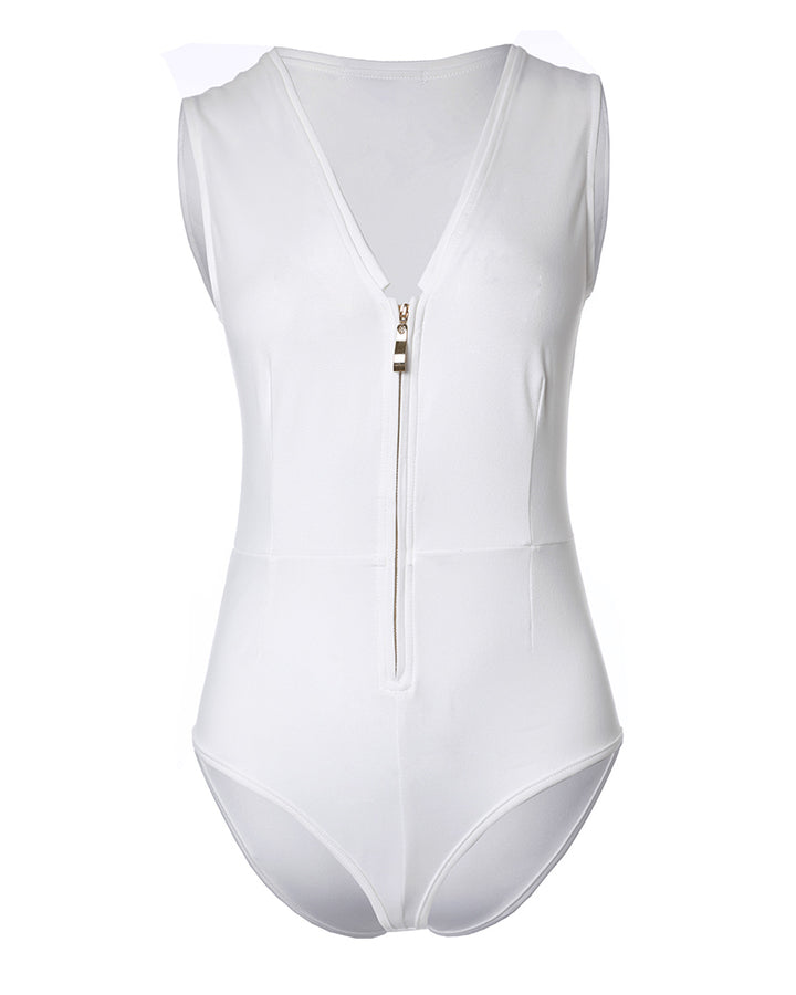 Zip Front V Neck Sleeveless Bodysuit