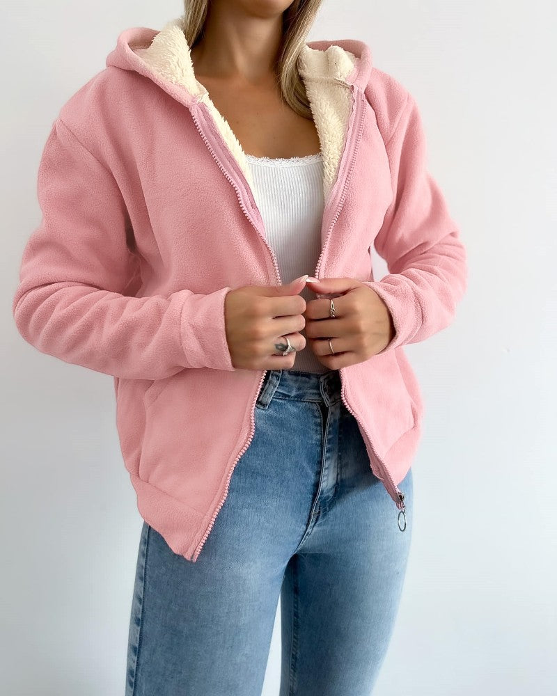 Zip Up Kangaroo Pocket Design Fleece Lined Thermal Hoodie