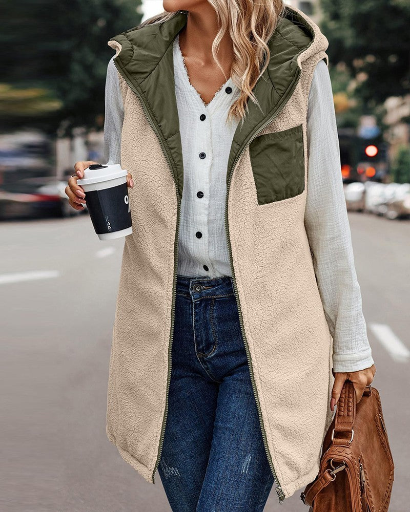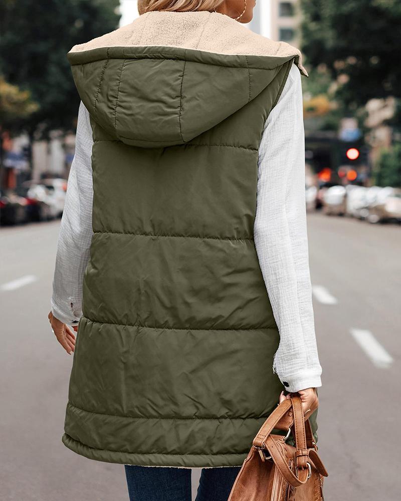 Zipper Design Hooded Versatile Longline Puffer Vest Coat