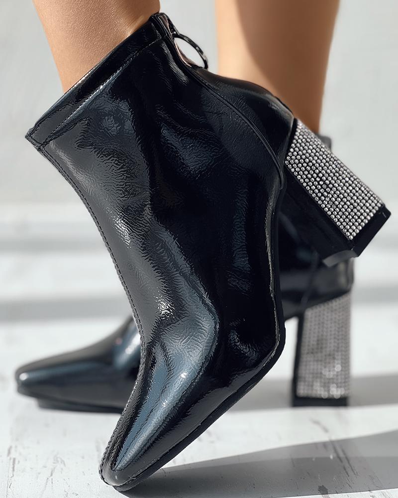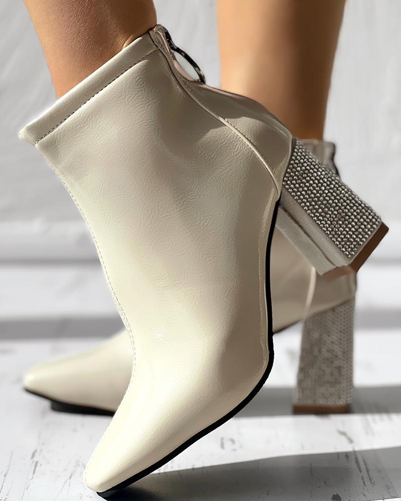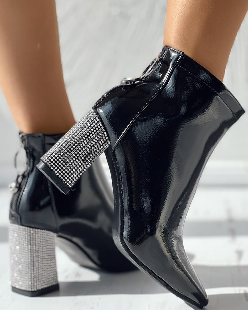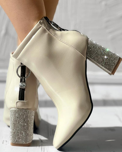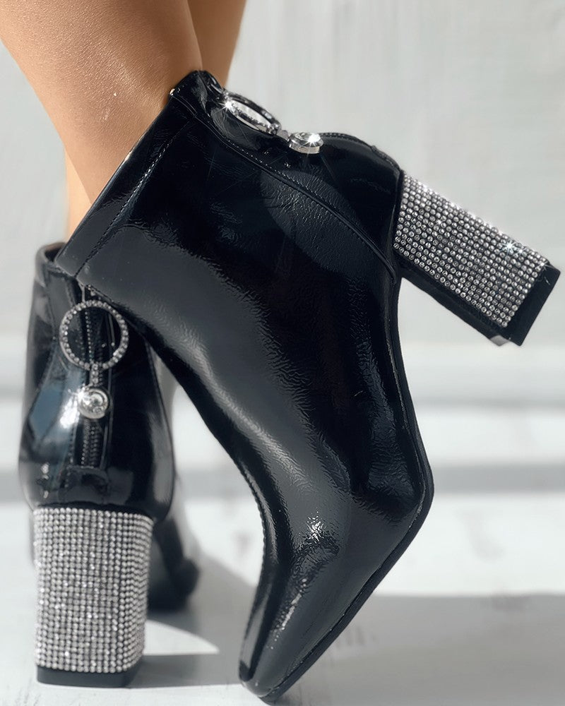 Zipper Design Rhinestone Chunky Heel Martin Boots