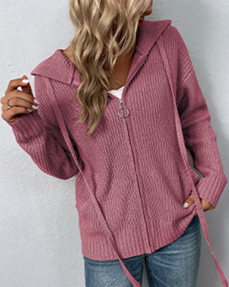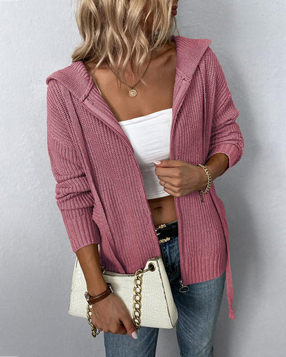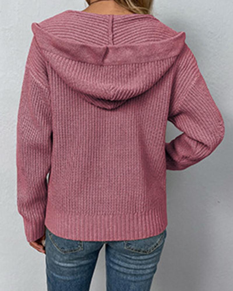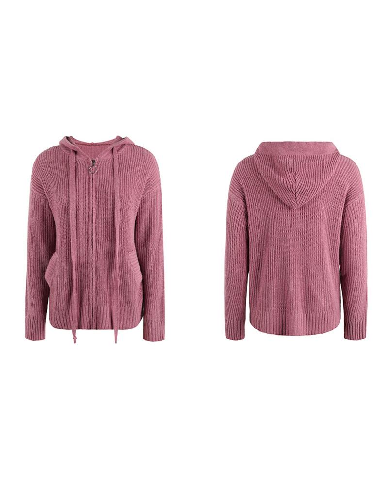 Zipper Pocket Design Hooded Knit Cardigan